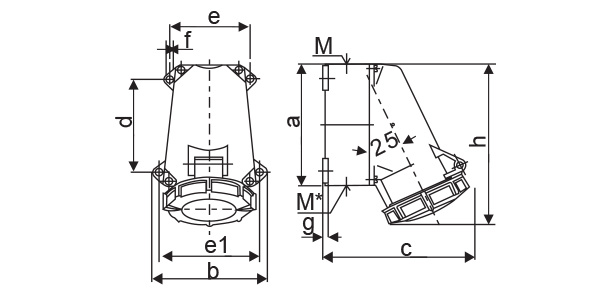 Current | Poles | a | b | c | d | e | e1 | f | g. | h | M | m* | |